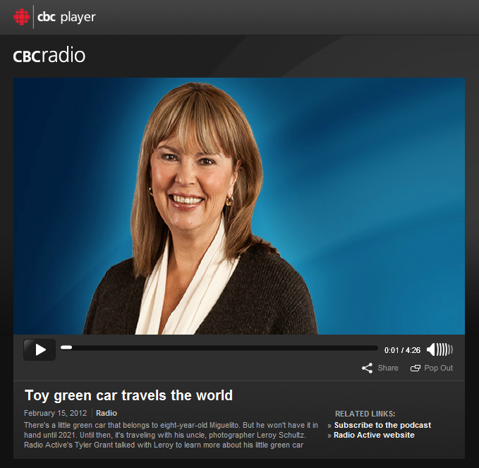 This photo was shot during an interview with CBC Radio’s Radio Active show. The ambient noise during the interview is from the traffic that skirted us while we shot and recorded. Click below to listen to the interview broadcast on CBC Radio 1 on February 26, 2012.